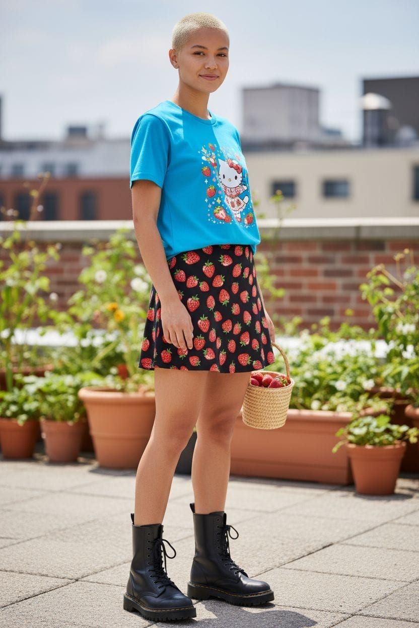 Estampado delantero de Kitty como "hada frutillita". Talla M: Ancho de 43 cm y Largo de 62 cm.