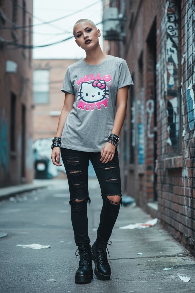 Polera gris con cara de kitty